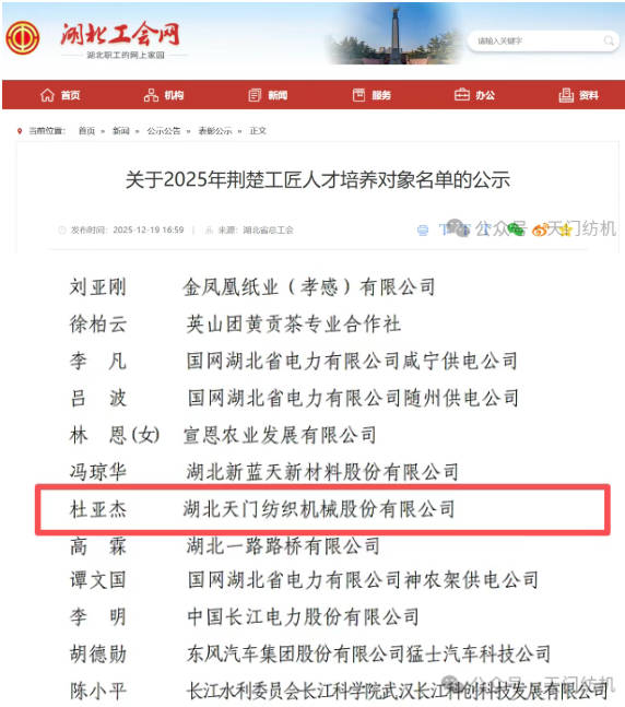 近日,威廉希尔总工程师杜亚杰成功入选荆楚工匠人才培养对象,这份荣誉既是对他二十余年深耕纺织装备研发领域的认可,更是对他以匠心守初心、以创新破难题的生动诠释。