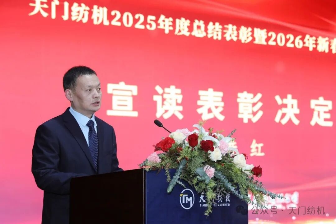 公司副总经理胡进红宣读了《关于表彰2025年度先进单位、先进个人的决定》,对一批在工作中积极进取、奋发作为、砥砺创新、建功立业的先进单位和先进个人予以隆重表彰。副总经理鄢坤、杨文峰、肖少华、邓俊杰及总经理焦伦进分别致颁奖词