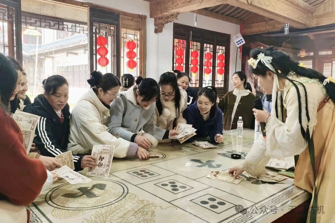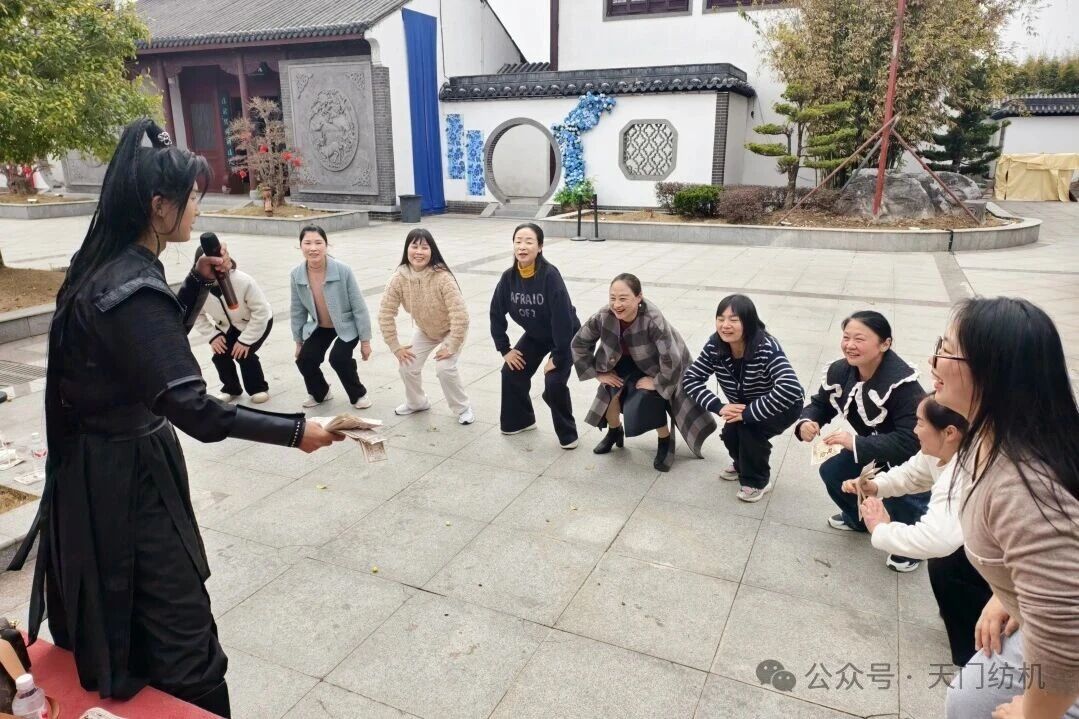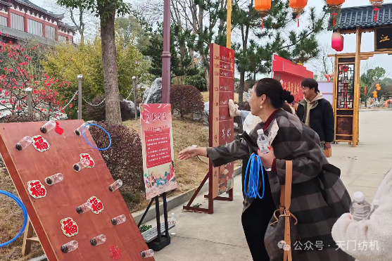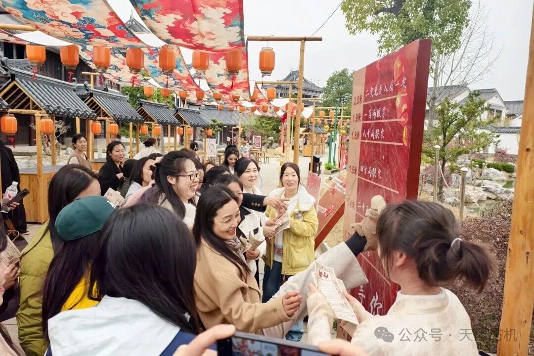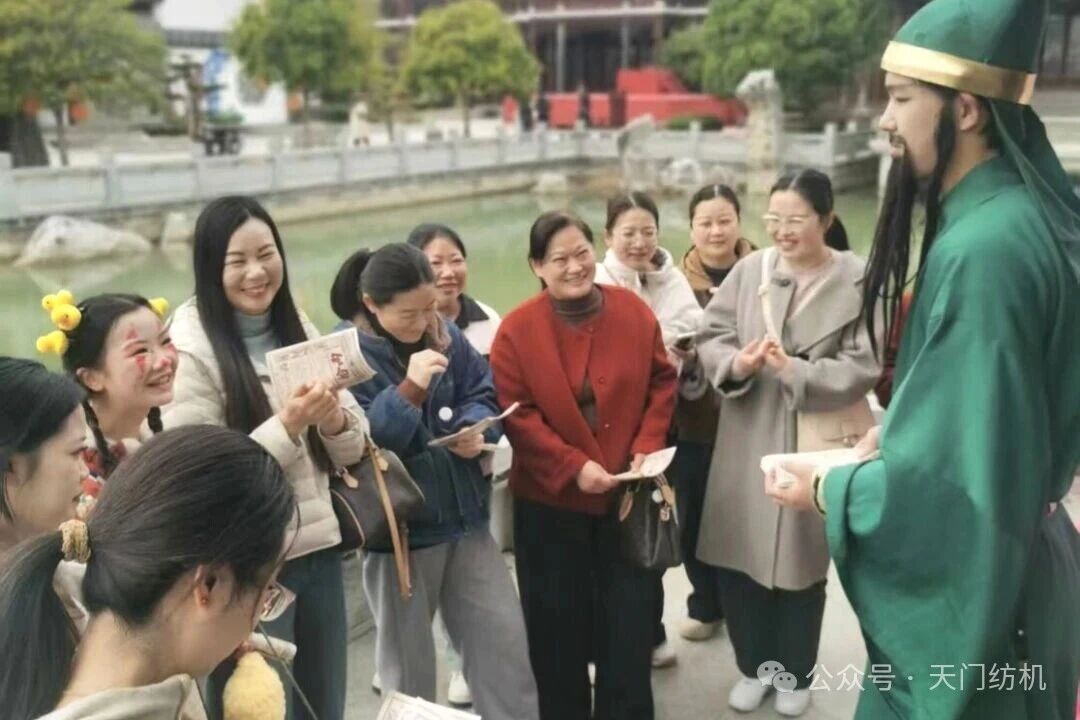抵达天门三国梦幻谷后,大家按分组有序开启游玩时光。该景区分为三国文化风情区与动力游乐项目区两大板块,十多处古风场景玩法各异,10余位专业NPC扮演三国角色现场互动打卡,女工们积极参与游戏,赢取“景区银票”,用银票体验射箭敲锣、投壶、抽签等趣味游戏,兑换精美礼品,欢声笑语回荡在景区的每一个角落。