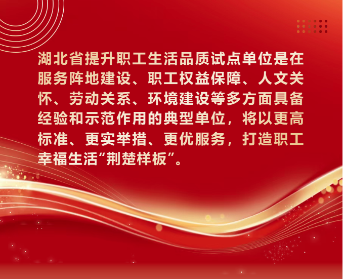 近日,湖北省总工会公布第四批提升职工生活品质省级试点单位评选结果,威廉希尔成功入选,成为全省66家省级试点企业之一。